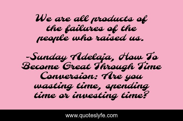 "Sunday Adelaja, How To Become Great Through Time Conversion: Are you wasting time, spending time or investing time? Quotes." Quoteslyfe.com, 2025. Fri. 05 Dec. 2025. <https://www.quoteslyfe.com/quote/We-are-all-products-of-the-failures-39026>.