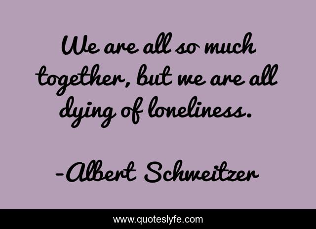 This page presents the quote "We are all so much together, but we are all dying of loneliness.". Author of this quote is Albert Schweitzer. .