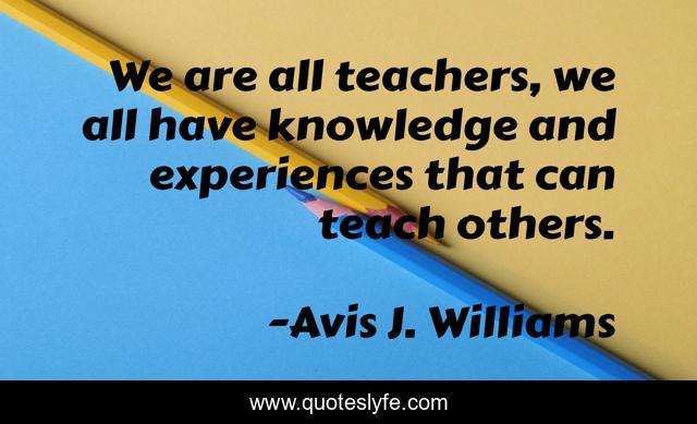 "Avis J. Williams Quotes." Quoteslyfe.com, 2025. Mon. 29 Dec. 2025. <https://www.quoteslyfe.com/quote/We-are-all-teachers-we-all-have-78044>.