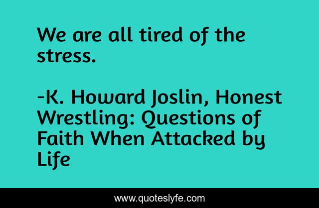 "K. Howard Joslin, Honest Wrestling: Questions of Faith When Attacked by Life Quotes." Quoteslyfe.com, 2025. Sat. 06 Dec. 2025. <https://www.quoteslyfe.com/quote/We-are-all-tired-of-the-stress-193200>.