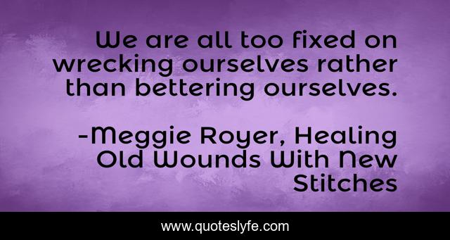 This page presents the quote "We are all too fixed on wrecking ourselves rather than bettering ourselves.". Author of this quote is Meggie Royer, Healing Old Wounds With New Stitches. This quote is about fix, hate, poetry, writing,.