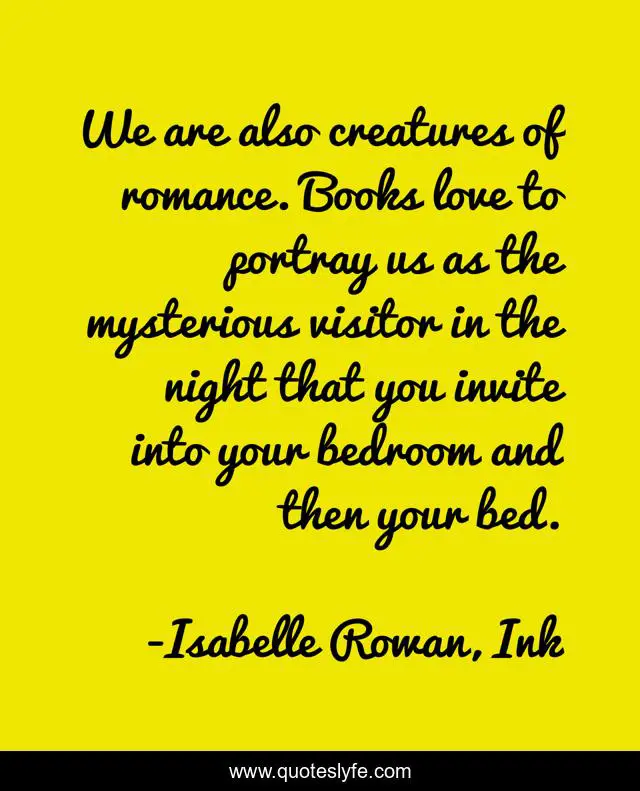 This page presents the quote "We are also creatures of romance. Books love to portray us as the mysterious visitor in the night that you invite into your bedroom and then your bed.". Author of this quote is Isabelle Rowan, Ink. This quote is about mysterious, romance, vampire, bed, creatures,.