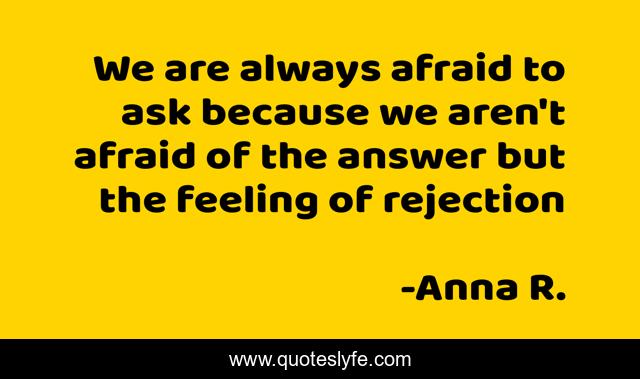 This page presents the quote "We are always afraid to ask because we aren't afraid of the answer but the feeling of rejection". Author of this quote is Anna R.. This quote is about rejection, expectations, answers, afraid-to-love, afriad, ask, fear, hate,.
