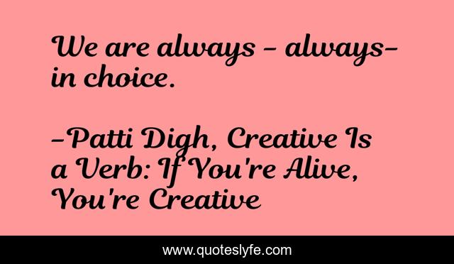 "Patti Digh, Creative Is a Verb: If You're Alive, You're Creative Quotes." Quoteslyfe.com, 2025. Fri. 05 Dec. 2025. <https://www.quoteslyfe.com/quote/We-are-always-always-in-choice-184812>.