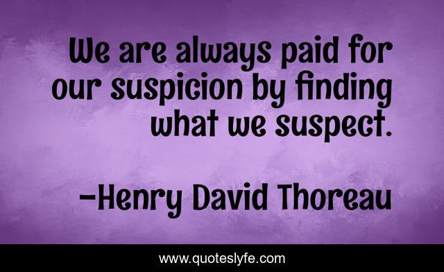 This page presents the quote "We are always paid for our suspicion by finding what we suspect.". Author of this quote is Henry David Thoreau. This quote is about positive, confidence,.