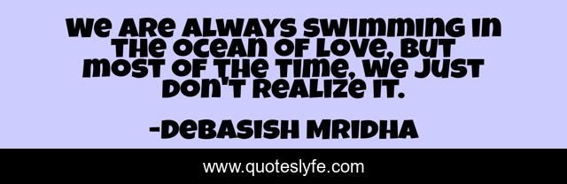 This page presents the quote "We are always swimming in the ocean of love, but most of the time, we just don't realize it.". Author of this quote is Debasish Mridha. This quote is about debasish, love, mridha, philosophy, debasish-mridha, ocean-of-love, don-t-realize-it, affection, swimming,.