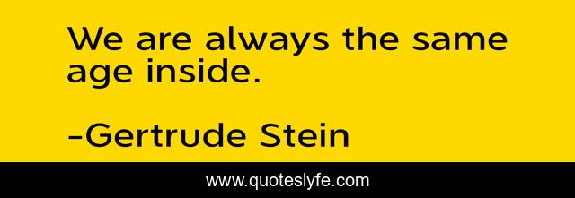 This page presents the quote "We are always the same age inside.". Author of this quote is Gertrude Stein. .