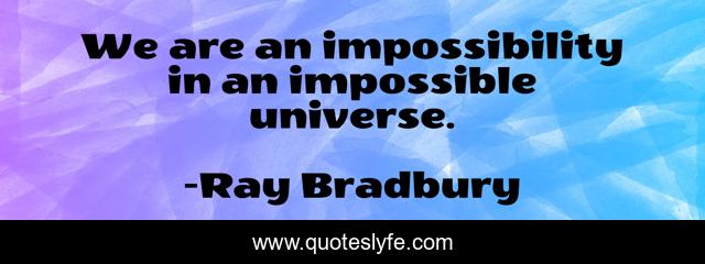 This page presents the quote "We are an impossibility in an impossible universe.". Author of this quote is Ray Bradbury. This quote is about science, wonder, sense-of-wonder, universe,.