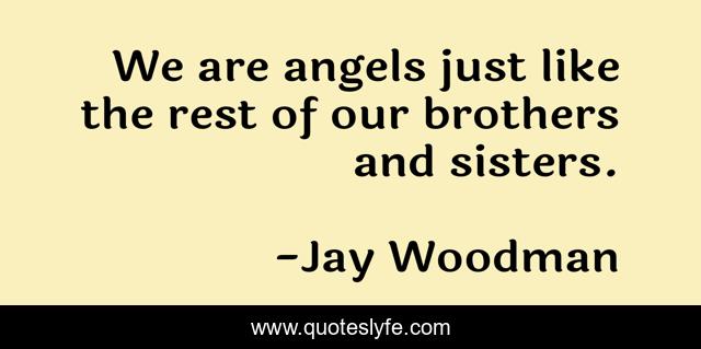 This page presents the quote "We are angels just like the rest of our brothers and sisters.". Author of this quote is Jay Woodman. This quote is about innocents, brothers, pure-heart, innocent, sisters-and-brothers, pure-soul, pure, sisters, brothers-and-sisters,.