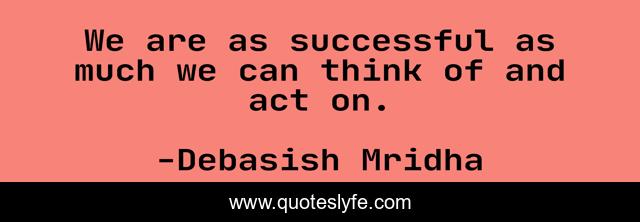This page presents the quote "We are as successful as much we can think of and act on.". Author of this quote is Debasish Mridha. This quote is about life, love, knowledge, inspirational, intelligence, philosophy, wisdom, quotes, affection,.