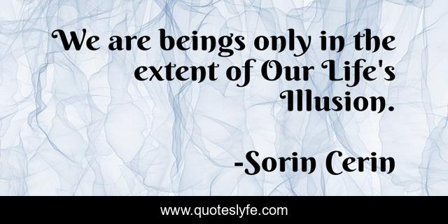 This page presents the quote "We are beings only in the extent of Our Life's Illusion.". Author of this quote is Sorin Cerin. .
