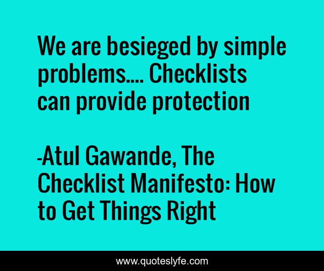 "Atul Gawande, The Checklist Manifesto: How to Get Things Right Quotes." Quoteslyfe.com, 2025. Sat. 06 Dec. 2025. <https://www.quoteslyfe.com/quote/We-are-besieged-by-simple-problems-Checklists-213382>.