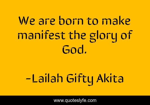 This page presents the quote "We are born to make manifest the glory of God.". Author of this quote is Lailah Gifty Akita. This quote is about faith, confidence, hoe, christian, god, motivational, born-again, optimistic, positive,.