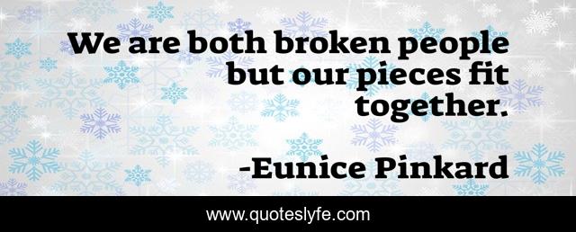 This page presents the quote "We are both broken people but our pieces fit together.". Author of this quote is Eunice Pinkard. This quote is about broken, love, inspirational, affection, enthusiasm,.