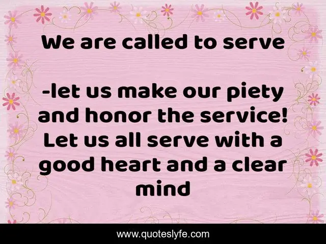 This page presents the quote "We are called to serve". Author of this quote is let us make our piety and honor the service! Let us all serve with a good heart and a clear mind. .
