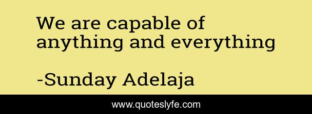 "Sunday Adelaja Quotes." Quoteslyfe.com, 2025. Fri. 05 Dec. 2025. <https://www.quoteslyfe.com/quote/We-are-capable-of-anything-and-everything-39569>.