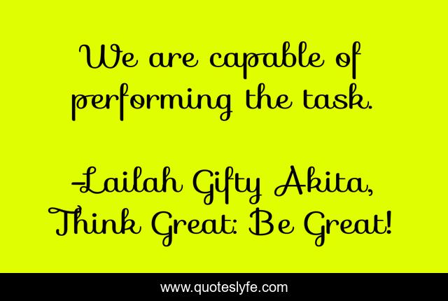 "Lailah Gifty Akita, Think Great: Be Great! Quotes." Quoteslyfe.com, 2025. Fri. 05 Dec. 2025. <https://www.quoteslyfe.com/quote/We-are-capable-of-performing-the-task-92783>.
