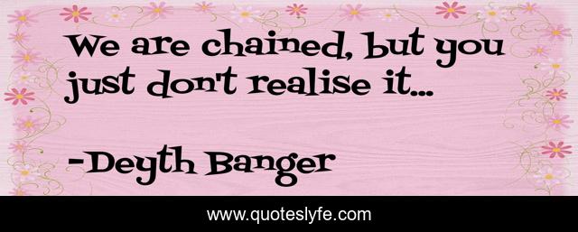 This page presents the quote "We are chained, but you just don't realise it...". Author of this quote is Deyth Banger. This quote is about don-t, but, chained,.