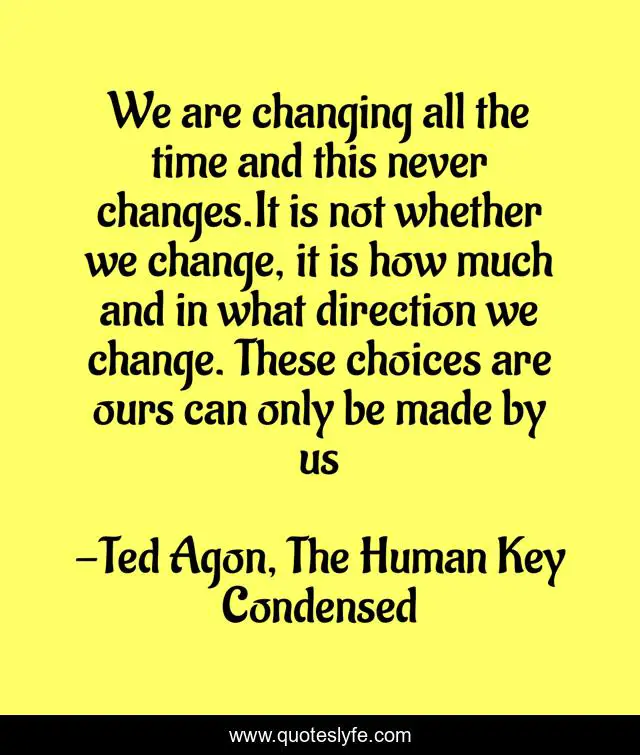 "Ted Agon, The Human Key Condensed Quotes." Quoteslyfe.com, 2025. Sun. 14 Dec. 2025. <https://www.quoteslyfe.com/quote/We-are-changing-all-the-time-and-116815>.