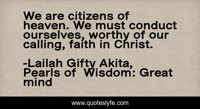 "Lailah Gifty Akita, Pearls of Wisdom: Great mind Quotes." Quoteslyfe.com, 2025. Mon. 08 Dec. 2025. <https://www.quoteslyfe.com/quote/We-are-citizens-of-heaven-We-must-62385>.