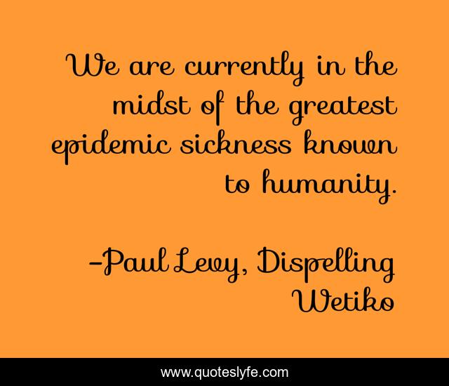 This page presents the quote "We are currently in the midst of the greatest epidemic sickness known to humanity.". Author of this quote is Paul Levy, Dispelling Wetiko. This quote is about body-mind-spirit, psychology, new-thought,.