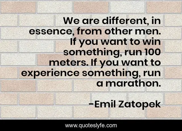 This page presents the quote "We are different, in essence, from other men. If you want to win something, run 100 meters. If you want to experience something, run a marathon.". Author of this quote is Emil Zatopek. This quote is about win, men,.