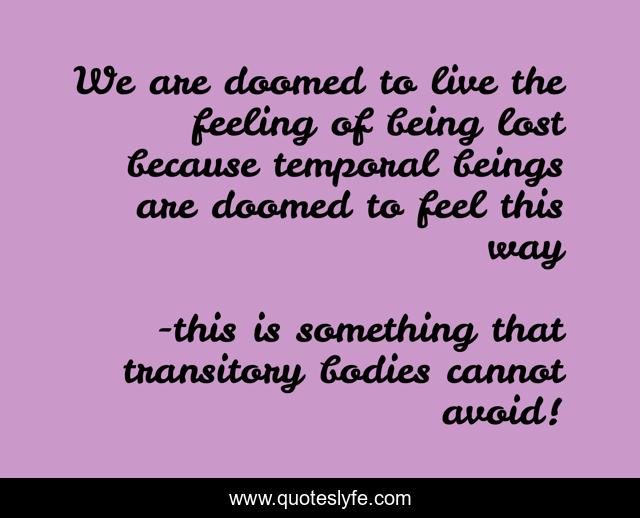 This page presents the quote "We are doomed to live the feeling of being lost because temporal beings are doomed to feel this way". Author of this quote is this is something that transitory bodies cannot avoid!. .