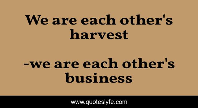 This page presents the quote "We are each other's harvest". Author of this quote is we are each other's business. .