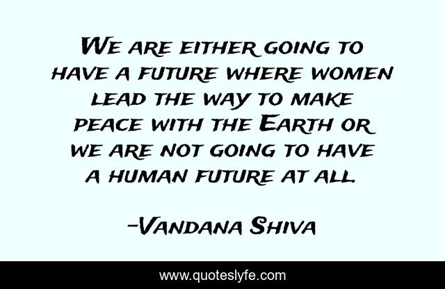 This page presents the quote "We are either going to have a future where women lead the way to make peace with the Earth or we are not going to have a human future at all.". Author of this quote is Vandana Shiva. This quote is about earth, women,.