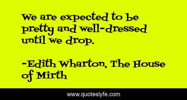 This page presents the quote "We are expected to be pretty and well-dressed until we drop.". Author of this quote is Edith Wharton, The House of Mirth. This quote is about edith-wharton, fashion, the-house-of-mirth, beauty, women,.