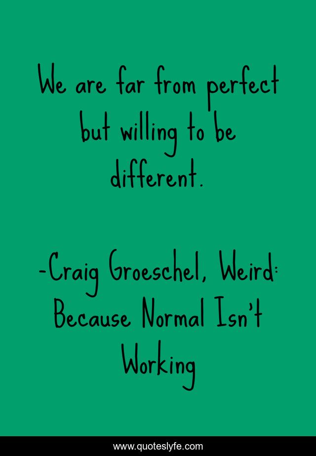 This page presents the quote "We are far from perfect but willing to be different.". Author of this quote is Craig Groeschel, Weird: Because Normal Isn't Working. This quote is about perfect, be, different, from, far, we, but, to, willing,.
