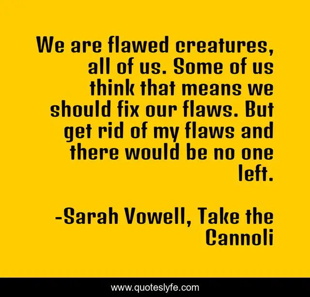 "Sarah Vowell, Take the Cannoli Quotes." Quoteslyfe.com, 2025. Fri. 05 Dec. 2025. <https://www.quoteslyfe.com/quote/We-are-flawed-creatures-all-of-us-3862>.