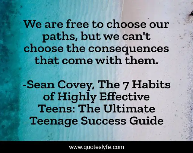 "Sean Covey, The 7 Habits of Highly Effective Teens: The Ultimate Teenage Success Guide Quotes." Quoteslyfe.com, 2025. Sun. 07 Dec. 2025. <https://www.quoteslyfe.com/quote/We-are-free-to-choose-our-paths-174653>.