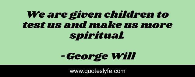 This page presents the quote "We are given children to test us and make us more spiritual.". Author of this quote is George Will. .