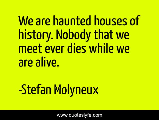 This page presents the quote "We are haunted houses of history. Nobody that we meet ever dies while we are alive.". Author of this quote is Stefan Molyneux. This quote is about life, death, psychology, philosophy,.