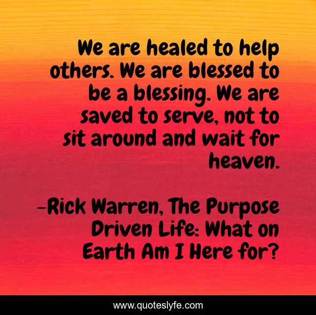 "Rick Warren, The Purpose Driven Life: What on Earth Am I Here for? Quotes." Quoteslyfe.com, 2025. Sat. 06 Dec. 2025. <https://www.quoteslyfe.com/quote/We-are-healed-to-help-others-We-125694>.