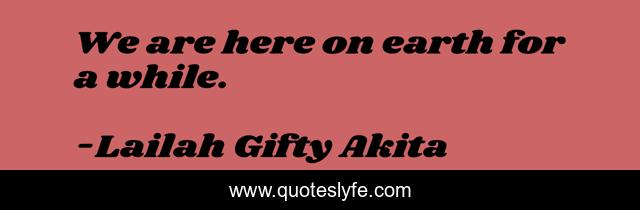 This page presents the quote "We are here on earth for a while.". Author of this quote is Lailah Gifty Akita. This quote is about life-philosophy, living-life, self-help,.