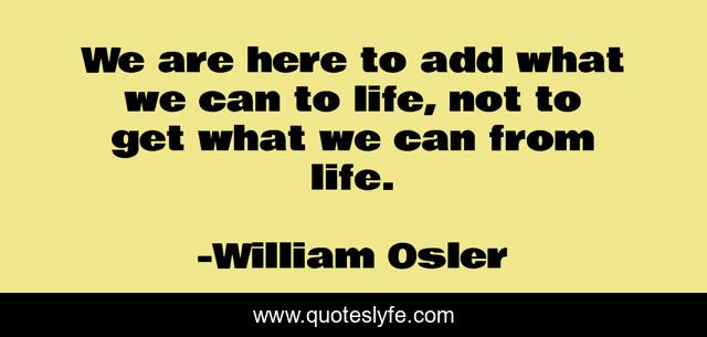 This page presents the quote "We are here to add what we can to life, not to get what we can from life.". Author of this quote is William Osler. This quote is about add, here, get,.