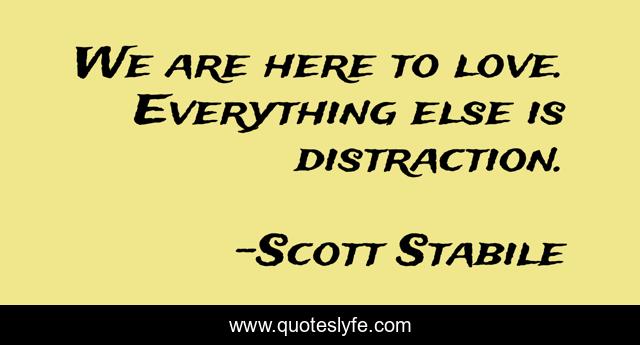 This page presents the quote "We are here to love. Everything else is distraction.". Author of this quote is Scott Stabile. This quote is about love, compassion, truth, distraction, affection, inspiration,.