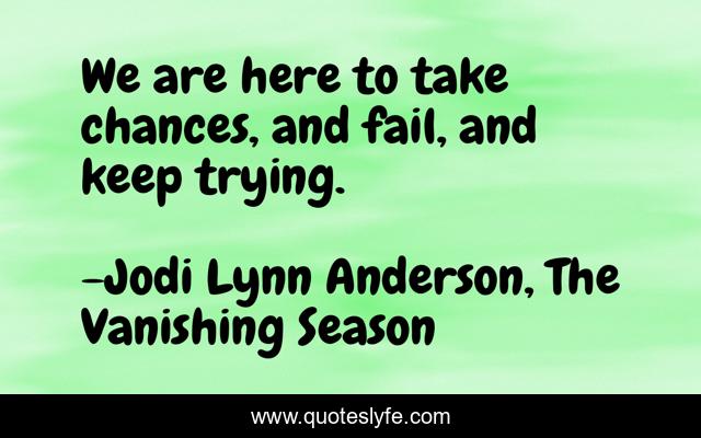 This page presents the quote "We are here to take chances, and fail, and keep trying.". Author of this quote is Jodi Lynn Anderson, The Vanishing Season. .