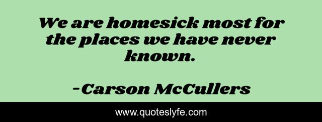 This page presents the quote "We are homesick most for the places we have never known.". Author of this quote is Carson McCullers. This quote is about longing, nostalgia,.