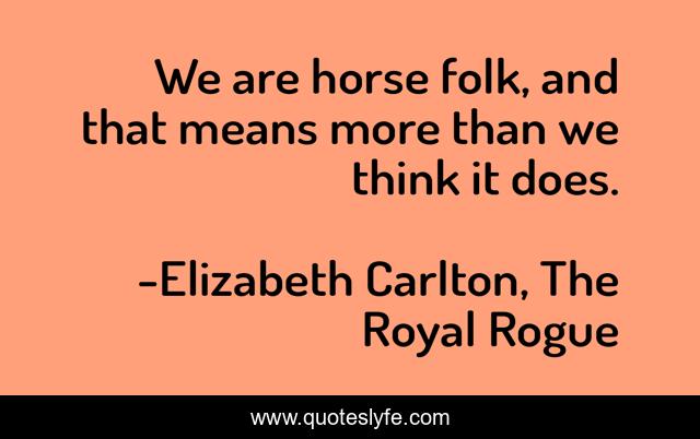 "Elizabeth Carlton, The Royal Rogue Quotes." Quoteslyfe.com, 2025. Sat. 06 Dec. 2025. <https://www.quoteslyfe.com/quote/We-are-horse-folk-and-that-means-258792>.