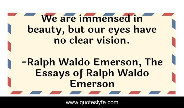 This page presents the quote "We are immensed in beauty, but our eyes have no clear vision.". Author of this quote is Ralph Waldo Emerson, The Essays of Ralph Waldo Emerson. This quote is about beauty, nature,.