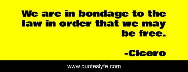 "Cicero Quotes." Quoteslyfe.com, 2025. Mon. 08 Dec. 2025. <https://www.quoteslyfe.com/quote/We-are-in-bondage-to-the-law-269595>.