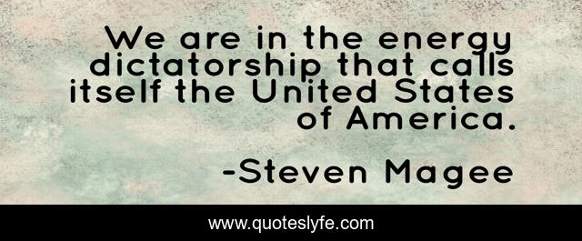 This page presents the quote "We are in the energy dictatorship that calls itself the United States of America.". Author of this quote is Steven Magee. This quote is about united, government-propaganda, calls, dictatorship, energy, usa, government-regulation, states, itself,.