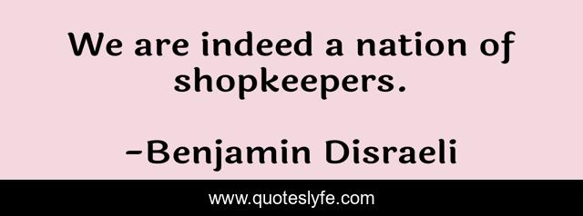 "Benjamin Disraeli Quotes." Quoteslyfe.com, 2025. Sat. 06 Dec. 2025. <https://www.quoteslyfe.com/quote/We-are-indeed-a-nation-of-shopkeepers-263747>.