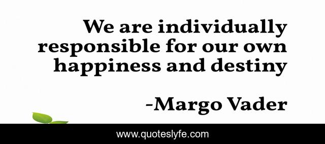 This page presents the quote "We are individually responsible for our own happiness and destiny". Author of this quote is Margo Vader. This quote is about enthusiasm, happiness, destiny, inspirational,.