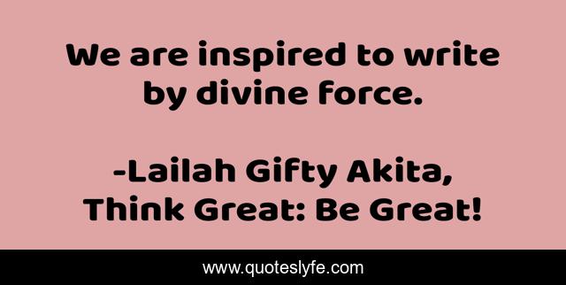 "Lailah Gifty Akita, Think Great: Be Great! Quotes." Quoteslyfe.com, 2025. Mon. 15 Dec. 2025. <https://www.quoteslyfe.com/quote/We-are-inspired-to-write-by-divine-130377>.