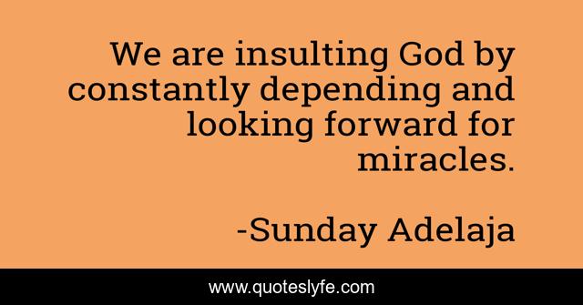 This page presents the quote "We are insulting God by constantly depending and looking forward for miracles.". Author of this quote is Sunday Adelaja. This quote is about looking-forward, miracles, godly, miracle, depending,.