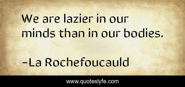 This page presents the quote "We are lazier in our minds than in our bodies.". Author of this quote is La Rochefoucauld. .